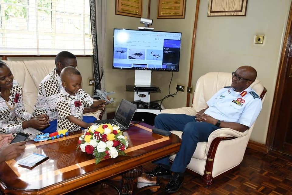 Elias Muthomi (3 Years) is hosted by the Kenya Airforce Commander, Major General Francis Ogolla in 2o19 in Moi Airbase Nairobi