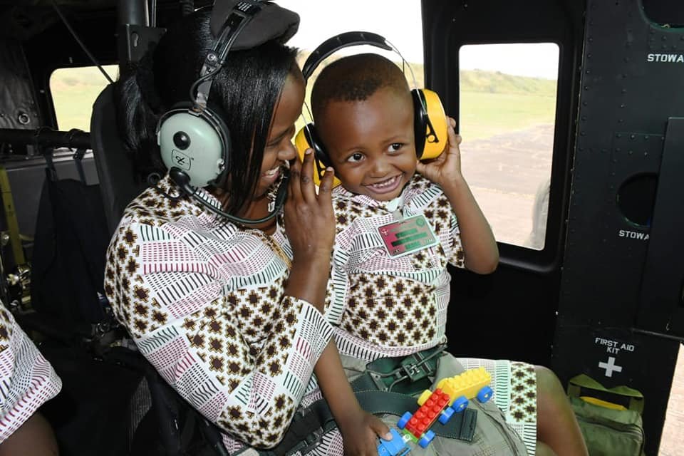 Kenya Airforce gives Elias Muthomi- 3 Yrs old a flight in their Bell Huey Helicopter to Thika
